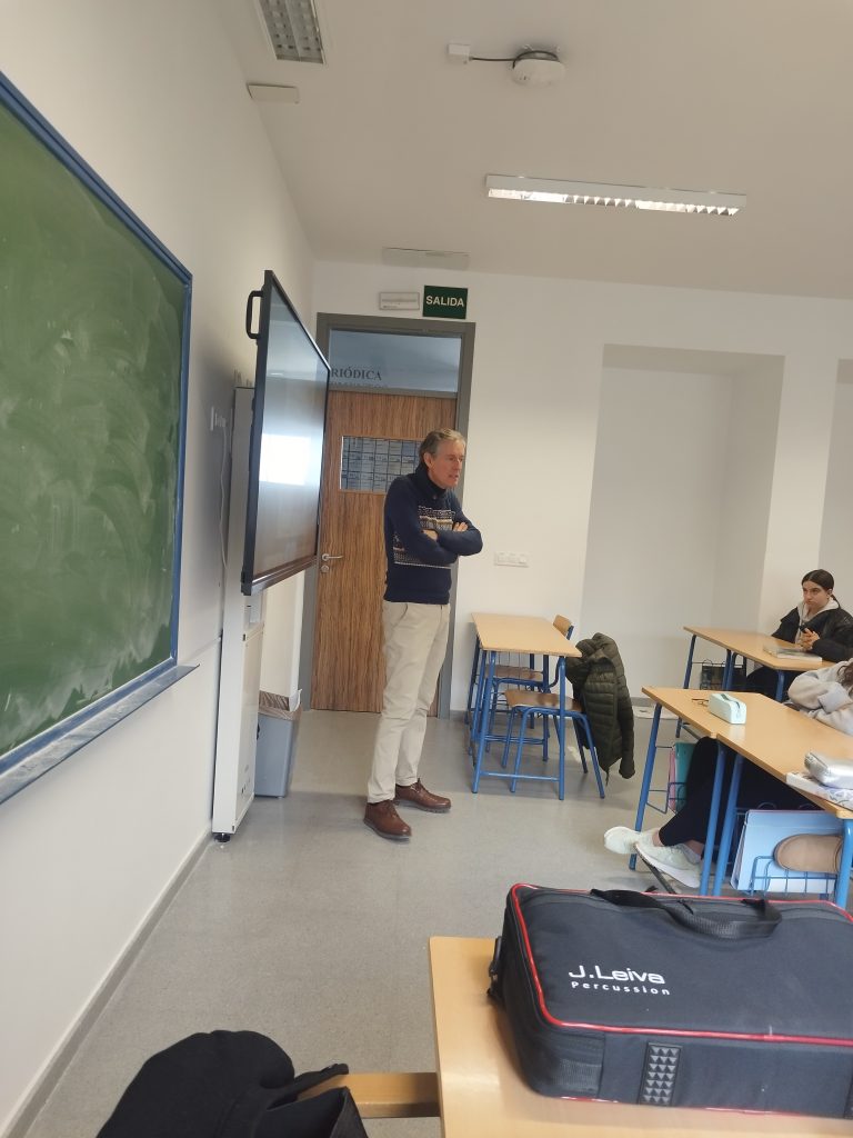 Hoy el alumnado de 1º de Bachillerato de Ciencias Sociales ha tenido la oportunidad de conocer de cerca un proyecto empresarial de referencia gracias a la visita de Pepe Leiva, fundador de “J. Leiva Percussion”. Su intervención en la materia de Economía permitió profundizar en el valor añadido de su empresa, en sus inicios y en los retos que forman parte de la trayectoria empresarial de cualquier emprendedor.