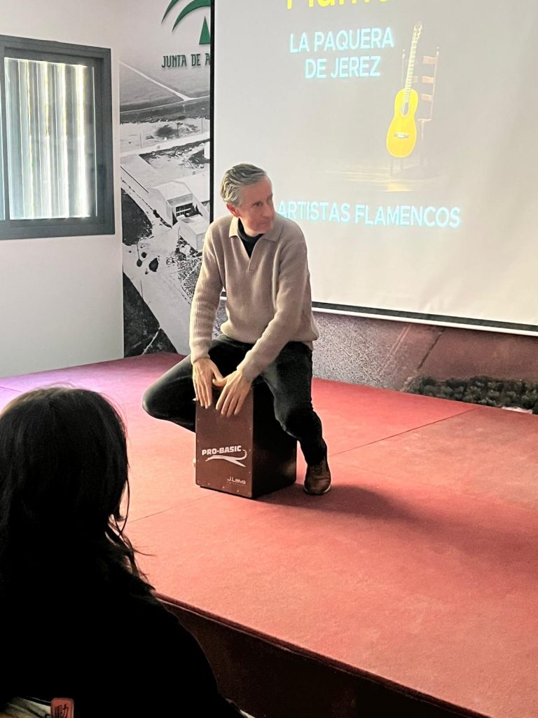 Además, tuvimos la suerte de contar con la presencia de nuestro compañero Pepe Leiva, profesor de Música y maestro de la percusión, que les habló a nuestros alumnos de una de sus especialidades: el cajón flamenco. Junto a él y sus sonidos hicimos un viaje por los orígenes del instrumento y descubrimos anécdotas de gran interés. También, al final de su intervención, nos regaló una demostración de música que fue muy bien recibida.