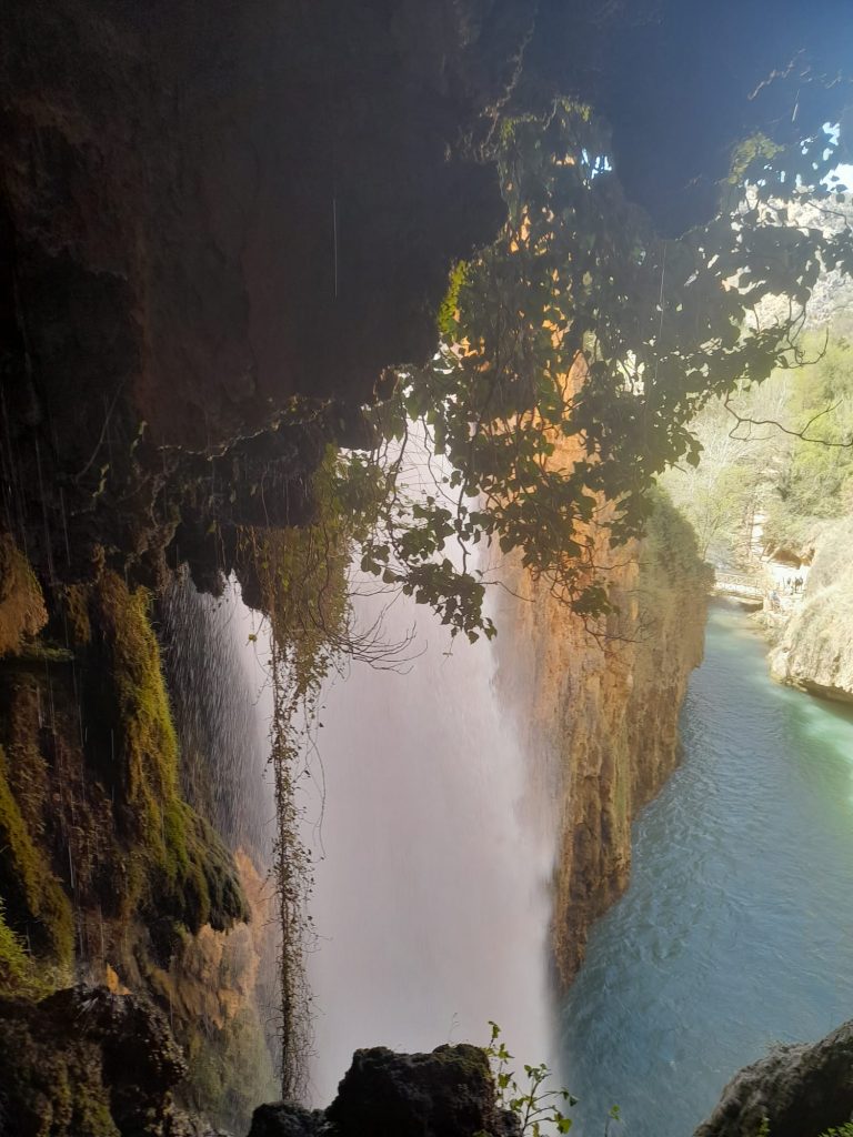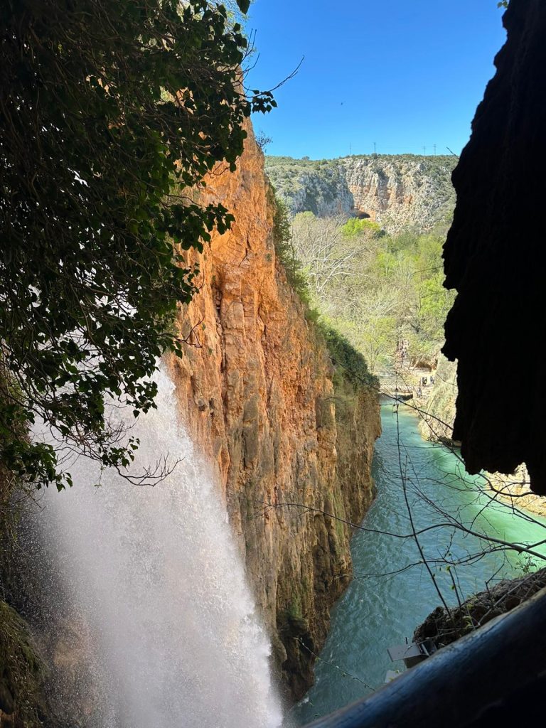 La primera parada de este trayecto ha sido el Monasterio de Piedra, un antiguo enclave cisterciense situado en un entorno natural privilegiado. Durante la mañana, los estudiantes han tenido la oportunidad de explorar este paraje paradisíaco, donde el contacto directo con el entorno les ha permitido profundizar en el estudio de los relieves kársticos y la dinámica fluvial característica de la zona.