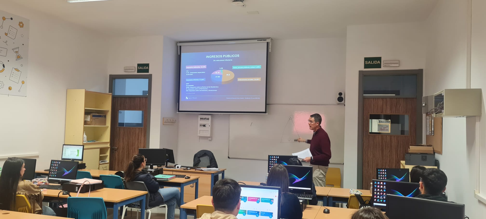 El alumnado de 2º curso del Ciclo Formativo de Grado Superior en Administración y Finanzas de nuestro centro ha participado recientemente en una jornada técnica impartida por profesionales de la Agencia Tributaria. Esta actividad se enmarca dentro de la formación complementaria que el IES Emilio Canalejo Olmeda ofrece para acercar la realidad institucional y administrativa al entorno educativo.