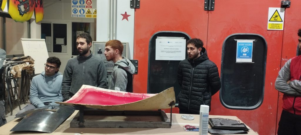 Como parte del proceso formativo, se han fabricado piezas reales destinadas al fuselaje de una de las aeronaves en construcción en las instalaciones de la empresa. Esta experiencia ha permitido al alumnado trabajar con procedimientos propios de la industria aeronáutica, reforzando su visión técnica y su conexión con el entorno productivo.