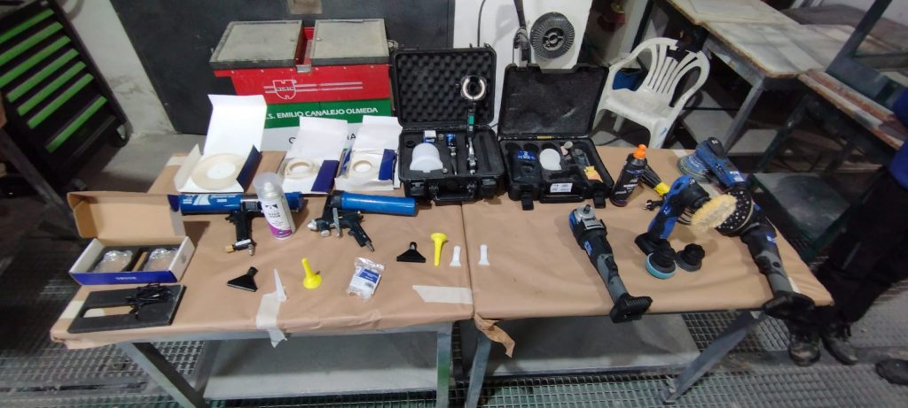 La actividad ha contado con la colaboración de expertos de las firmas Car Repair System y Perchán S.A. – La Madrileña, empresas referentes en el ámbito de la postventa y el mantenimiento de vehículos. Durante la sesión, se han abordado dos áreas críticas para el trabajo en el taller: la aplicación de selladores de carrocería para garantizar la estanqueidad y protección estructural, y los sistemas de pulido avanzados para lograr acabados de exposición.