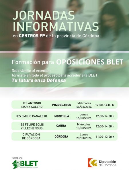 Nuestro centro se convirtió el pasado 16 de marzo de 2026 en el escenario de una importante sesión informativa centrada en las oportunidades de empleo y los procesos de oposición vinculados a la Base Logística del Ejército de Tierra (BLET). Esta actividad ha sido organizada por la Diputación de Córdoba, contando con la colaboración directa […]