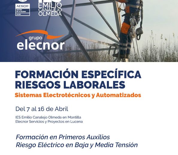 El alumnado de primer curso del Ciclo Formativo de Grado Superior en Sistemas Electrotécnicos y Automatizados del IES Emilio Canalejo Olmeda va a participar en una formación especializada diseñada para garantizar su seguridad y competencia profesional. Esta actividad se centra específicamente en la prevención de riesgos laborales y la aplicación de primeros auxilios en entornos […]