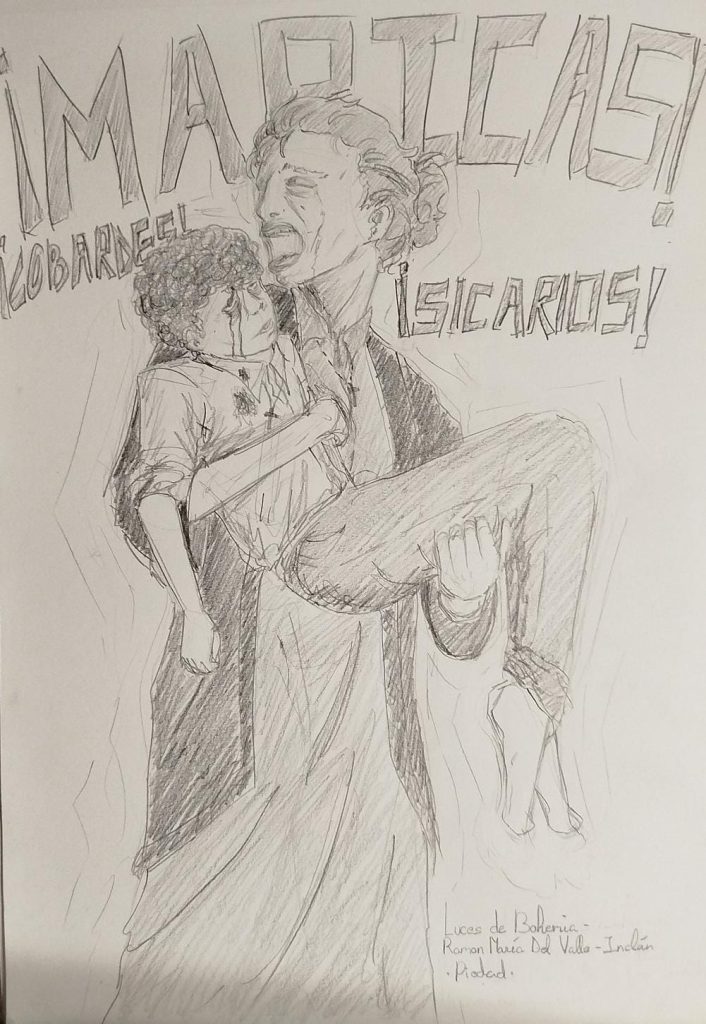 Un extracto de “Luces de Bohemia”, un extracto en el que se muestra el lamento de una madre que pierde a su hijo en una protesta anarquista por culpa de la autoridad. Una víctima de varias, una vida que al apagarse salpica a la que le dio vida. Las letras gritan y me estremecen, me asusta la forma en la que me imagino a esa madre, sosteniendo en sus brazos a un cuerpo inerte y frío, delirando del dolor que la pérdida lleva consigo. Vuelvo a releer la obra, fabrico con mis manos una representación que no llega a cumplir con el nudo en la garganta y las lágrimas que se derraman en mi interior.