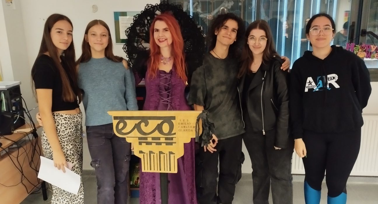 Por un lado, durante el recreo, nuestra compañera del departamento de inglés, Elena Cordón, organizó un recital poético en el que profesores y alumnos leyeron poemas de terror en versión original (inglés) y su traducción en español.
