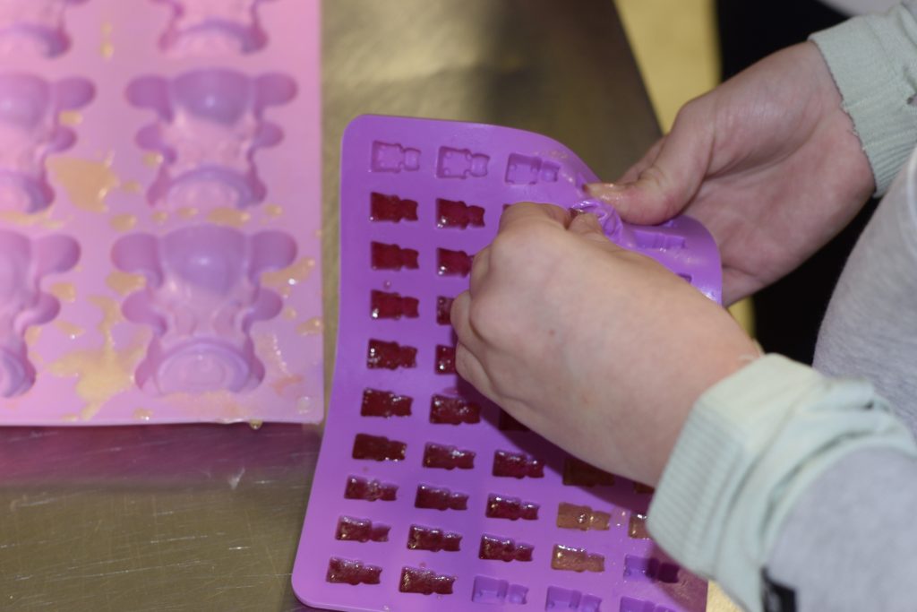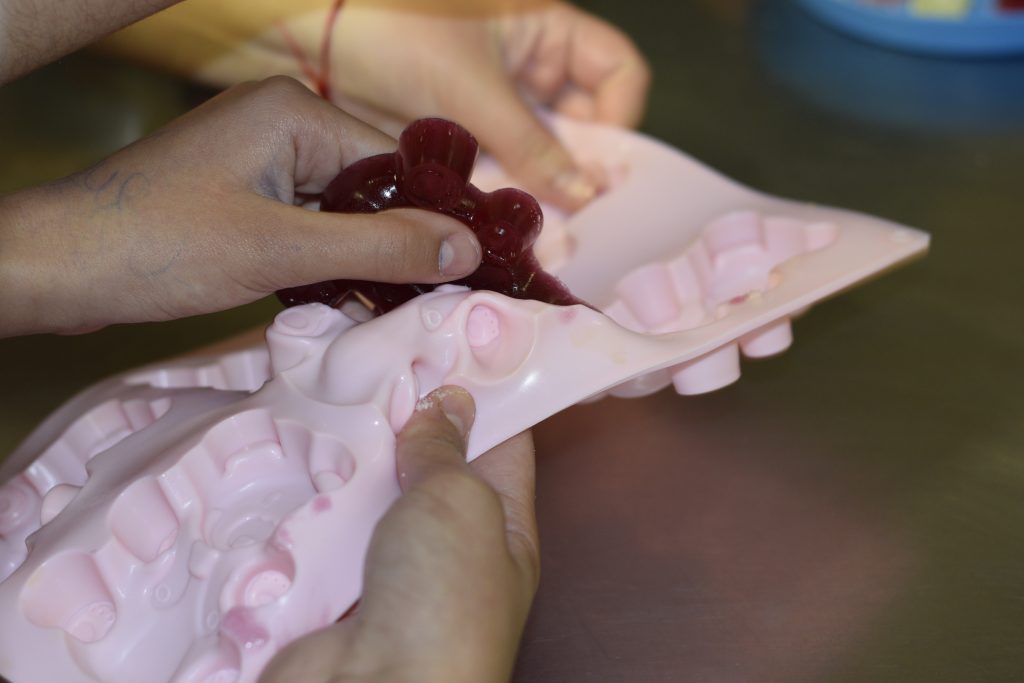 En una primera sesión, organizados en tres grupos diferentes, los alumnos prepararon siguiendo las indicaciones del profesor estas golosinas, seleccionando para ello entre tres sabores diferentes: fresa, limón y piña. Utilizaron, además, distintos moldes con diferentes tamaños que escogieron a su gusto para rellenarlos con la gelatina. Algunos no pudieron esperar a que cuajaran para probarlas…