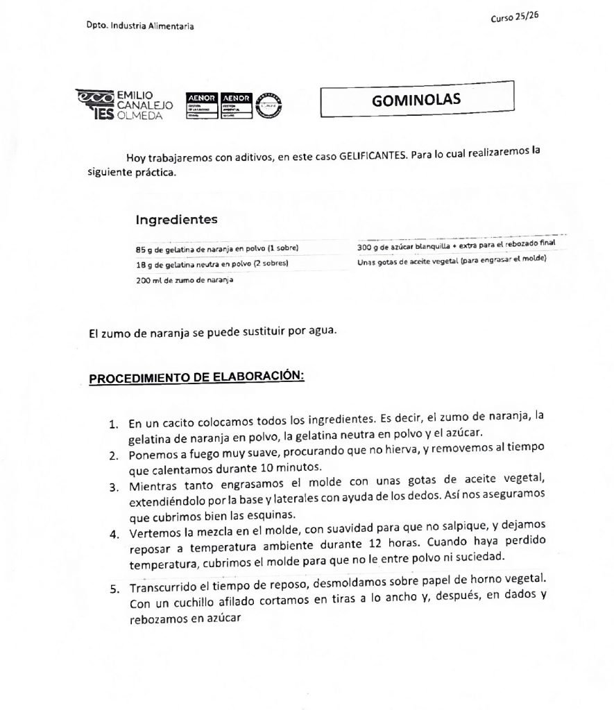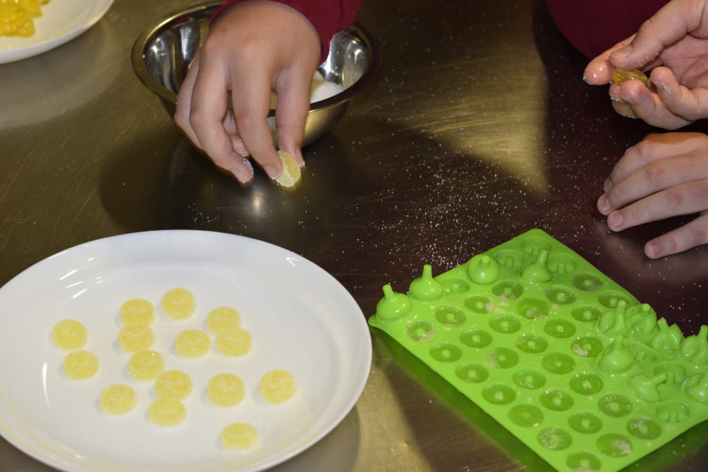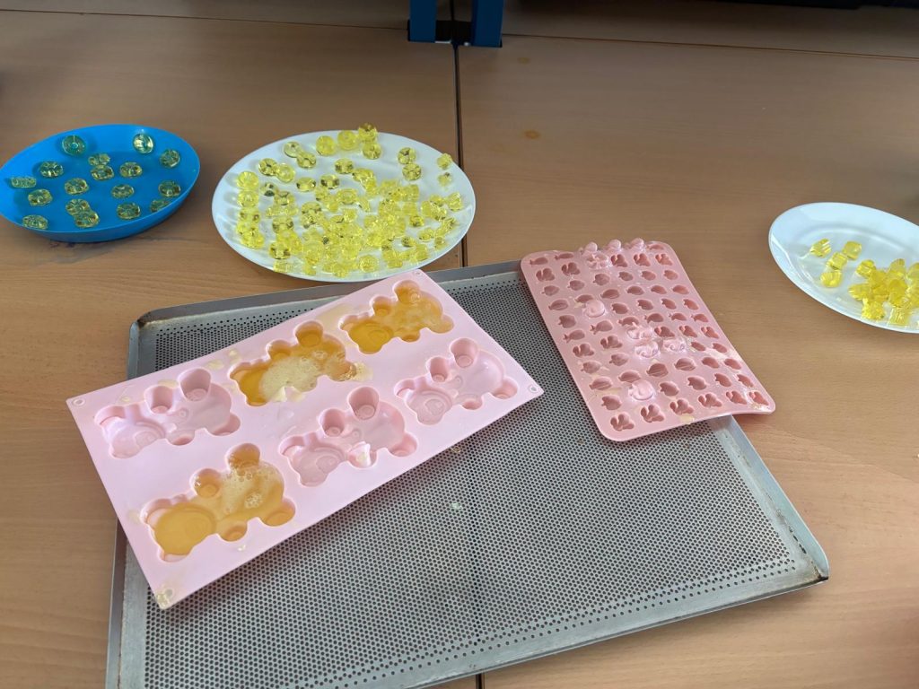 Los alumnos del programa de Profundización disfrutaron en las dos últimas semanas de clase de la segunda evaluación de un taller para elaborar gominolas. El profesor del Ciclo formativo de Alimentaria, Miguel Ángel Roldán, ofreció muy amablemente la realización de este taller en el que los alumnos, a partir de zumos de frutas, azúcar y otros ingredientes que podréis encontrar en la receta que aquí os ofrecemos, realizaron estos sencillos pero deliciosos dulces.
