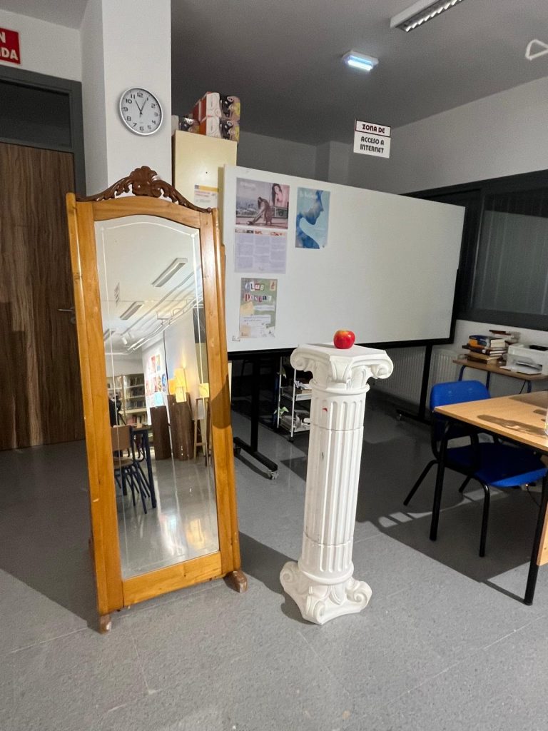 Bien es cierto que dicho espacio tuvo ya su origen en junio de 2024 cuando estrenamos los estores que nos permitían aislar las exposiciones de las estanterías de la biblioteca. Sin embargo, aún quedaba algo más para la excelencia, y ese algo más eran los focos, unos focos que nos permitieran trasladarnos a la sala de cualquier museo, que convirtieran el espacio de la biblioteca en una auténtica sala de exposiciones. Finalmente, lo hemos logrado y, desde aquel miércoles, podemos decir que nuestra biblioteca es mucho más que una sala de estudio y de consulta. Todo ello, además, ha sido financiado prácticamente en su totalidad gracias a la consecución de premios y reconocimientos que hemos ido recibiendo a lo largo de estos años, por lo que la comunidad educativa de nuestro centro puede estar enormemente orgullosa.