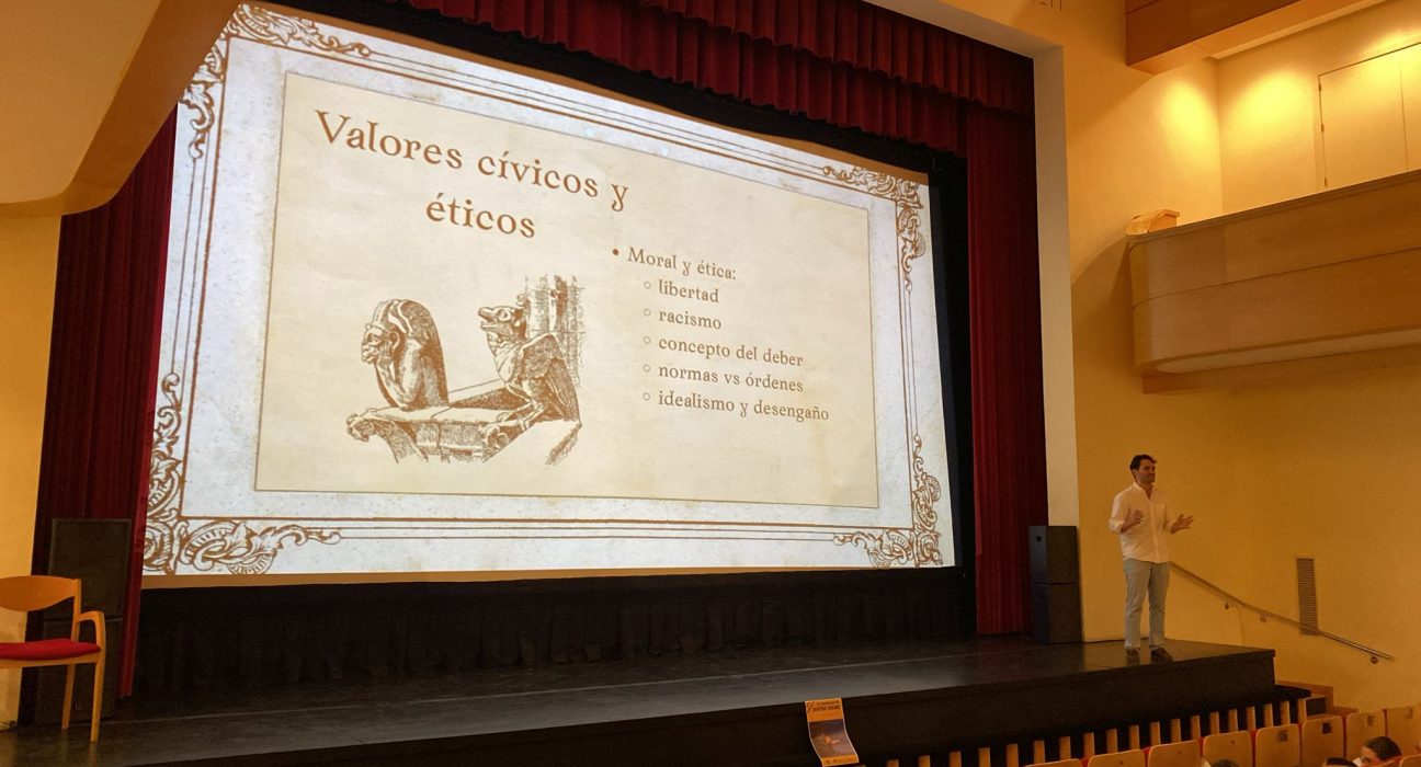 El visionado de la película estuvo precedido por una muy interesante presentación de nuestro compañero de matemáticas Antonio Arcila, quien les habló de algunos detalles curiosos sobre la cinta y les dio algunas claves de gran interés para una mejor comprensión de la película. Desde aquí, le agradecemos su participación.